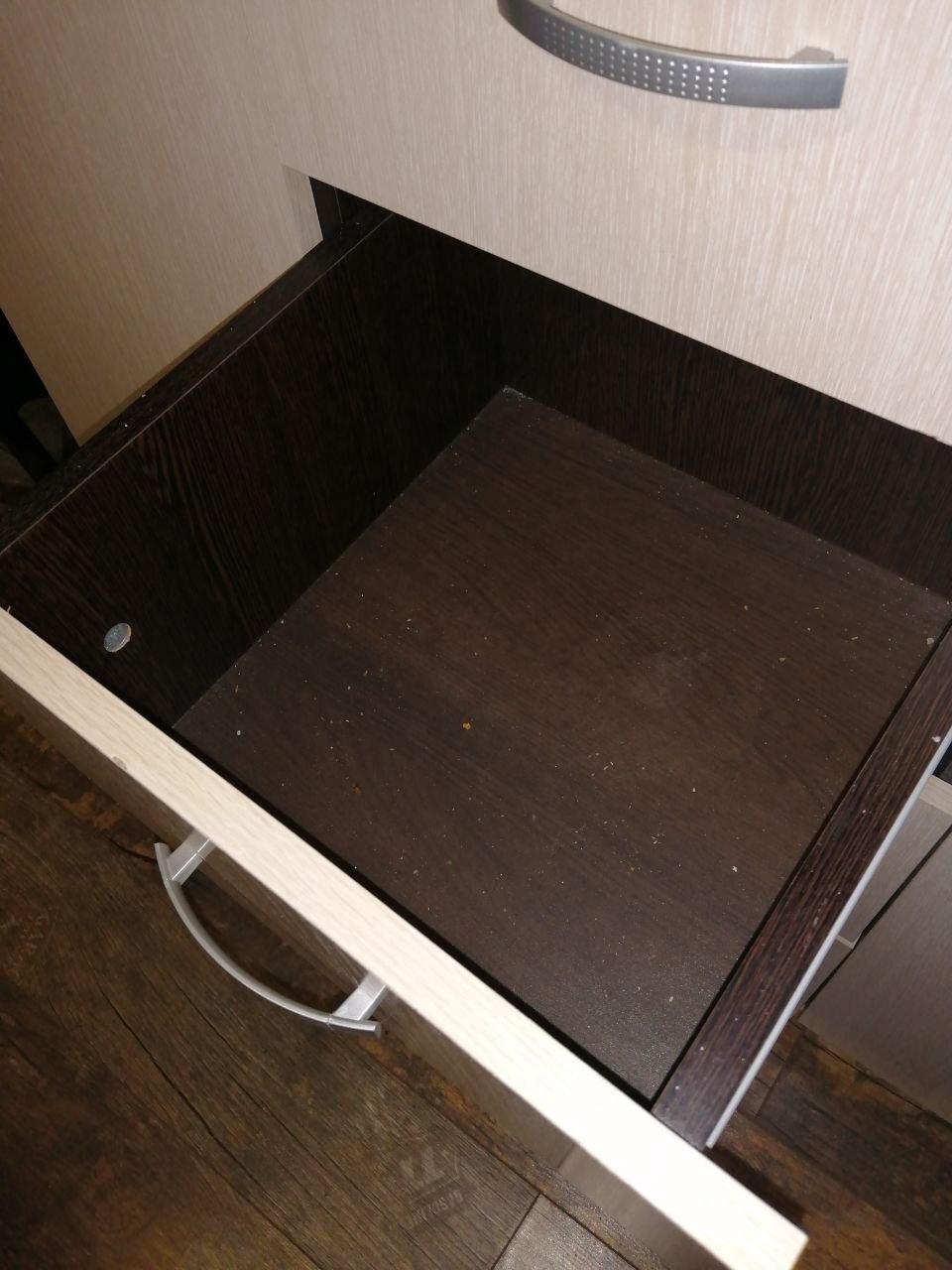 Уберем продукты с полок, устраним загрязнения и мелкий мусор изнутри