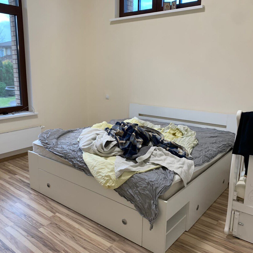 Снимем и отправим грязное постельное белье в стирку и застелим чистые комплекты